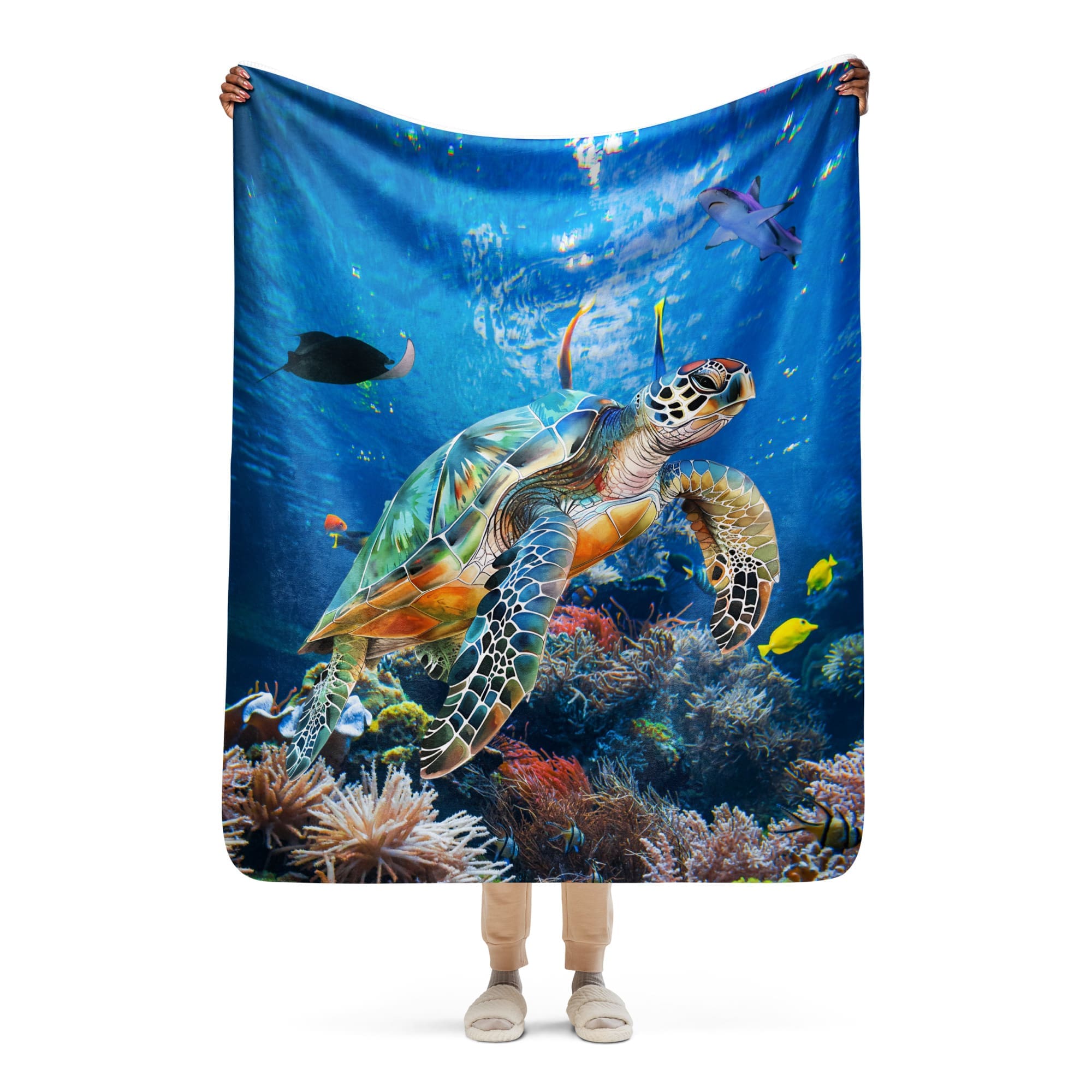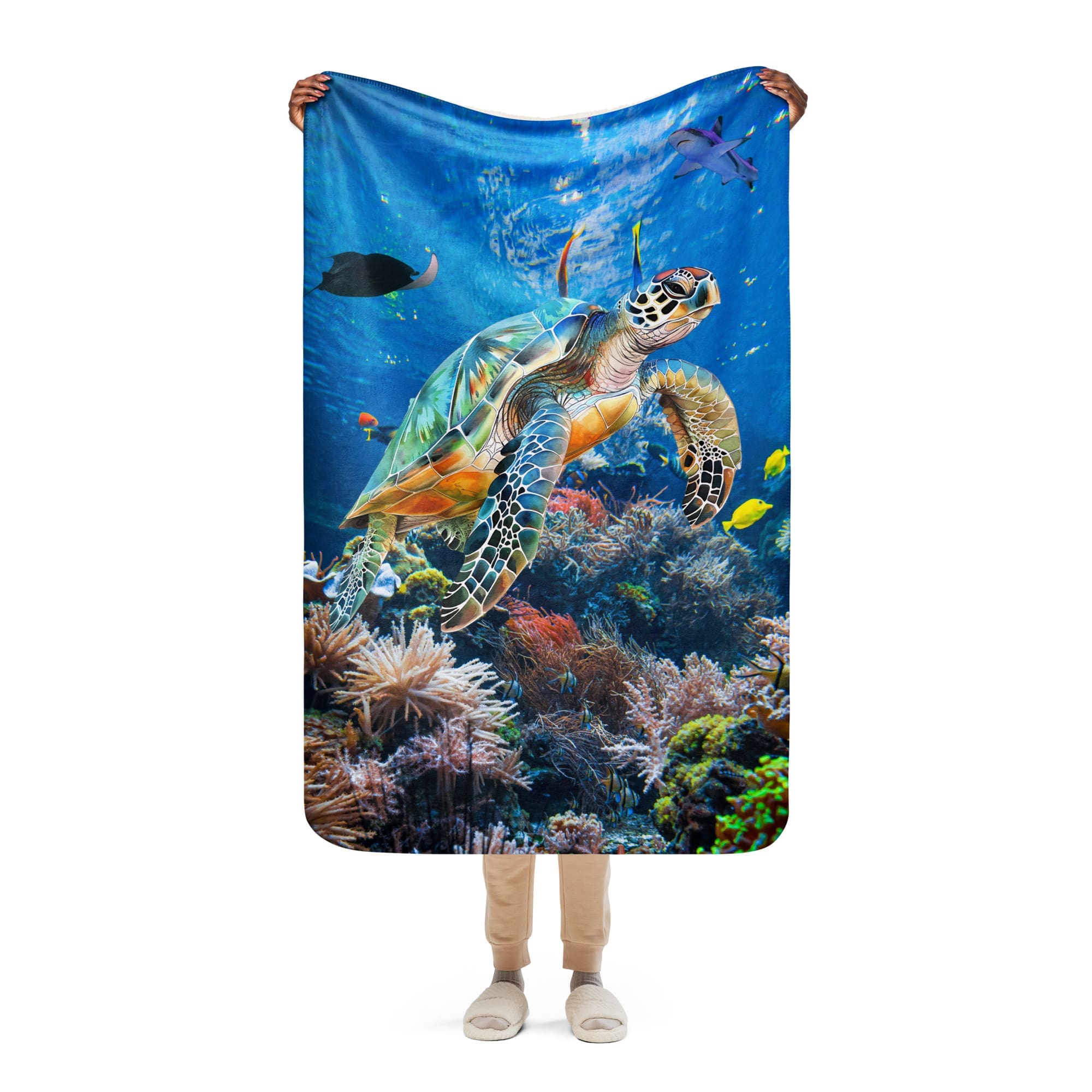 • Fabric: 100% polyester (51.5% surface fabric, 48.5% sherpa fabric)